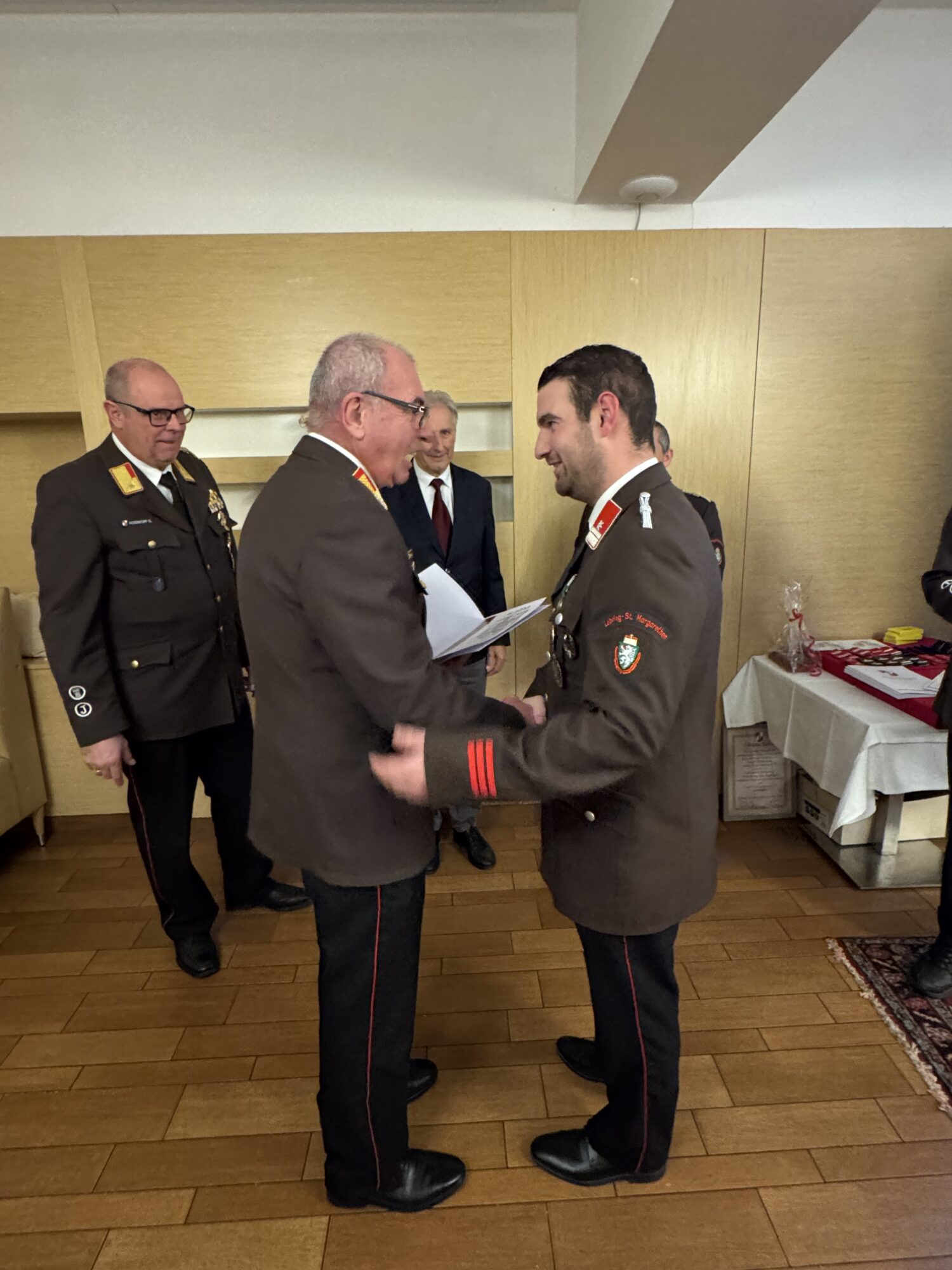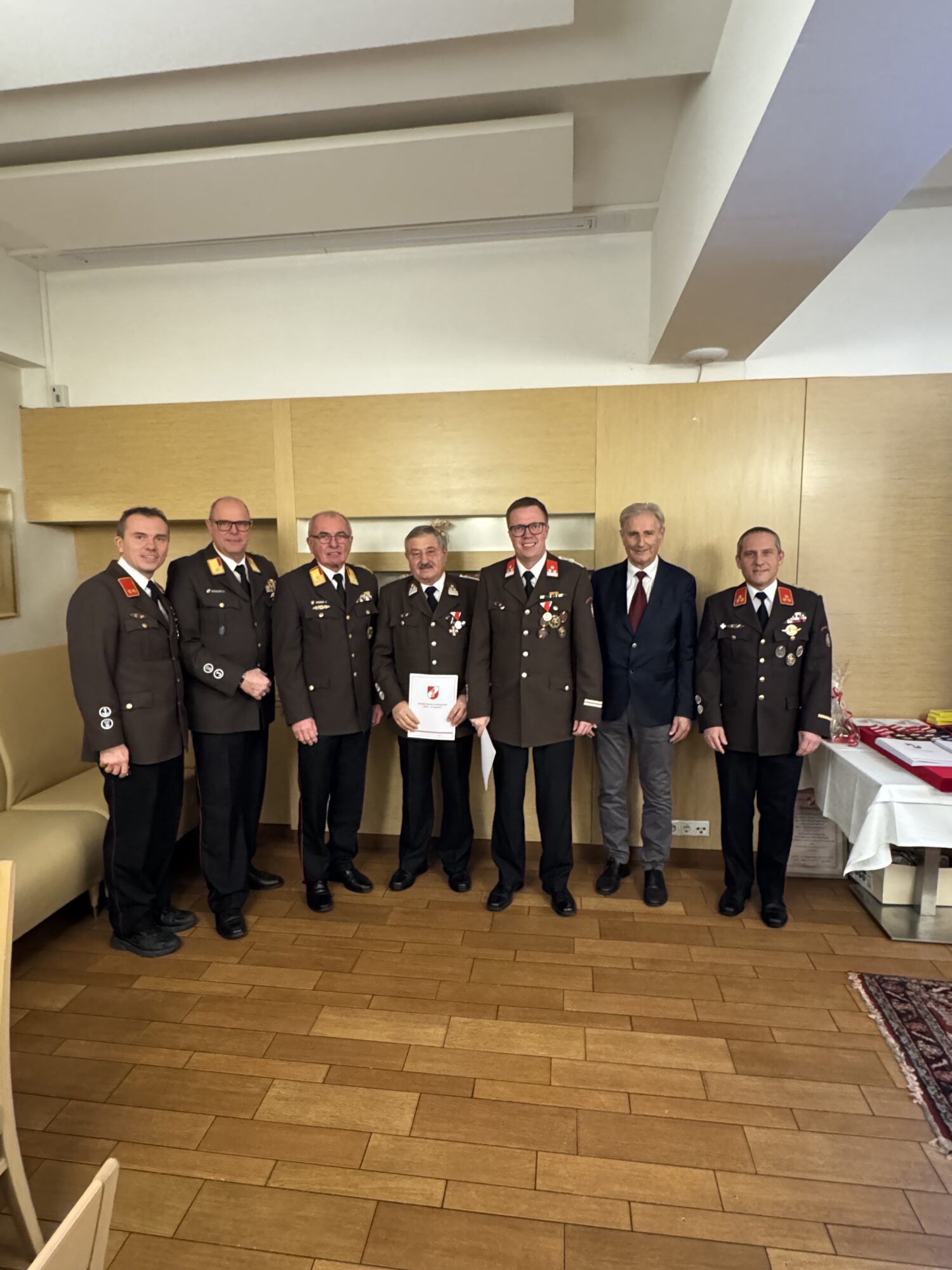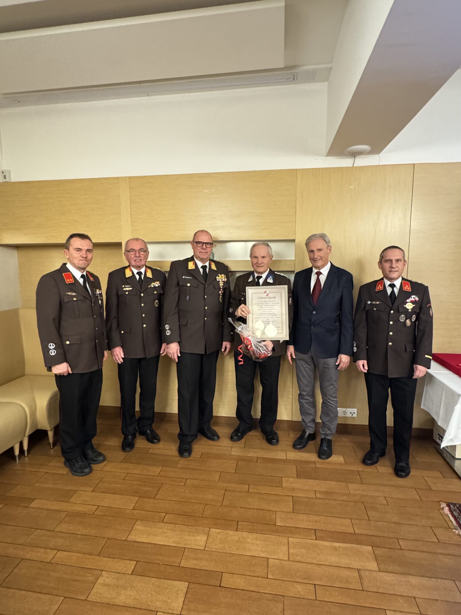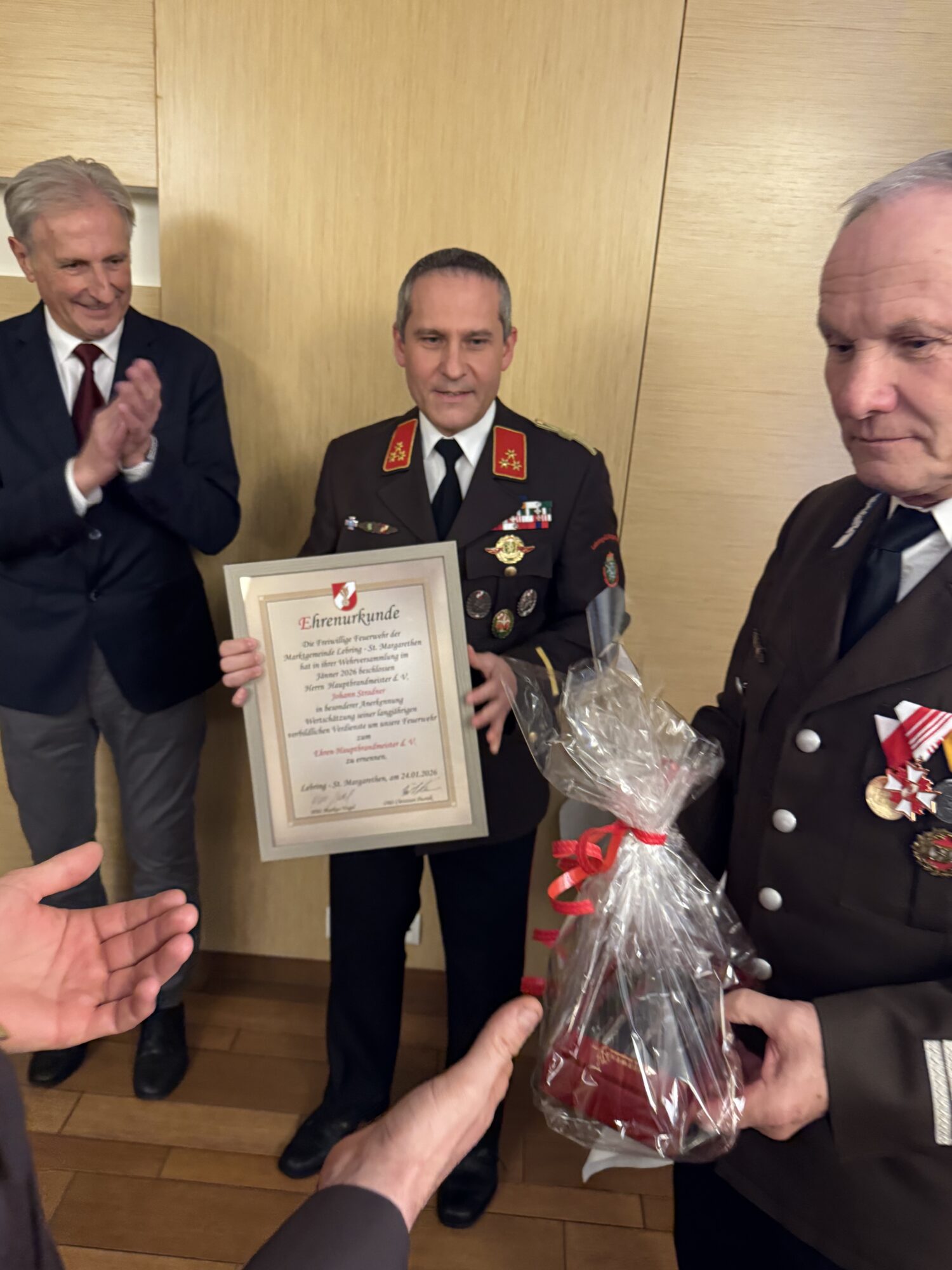 In der Sitzung des engen Ausschusses vom 05.01.2026 wurde vorgeschlagen, Johann Stradner den Dienstgrad Ehren-Hauptbrandmeister der Verwaltung zu verleihen. Im Zuge der Wehrversammlung wurde dieser Vorschlag mit einer Abstimmung der anwesenden KameradenInnen einstimmig unterstützt.