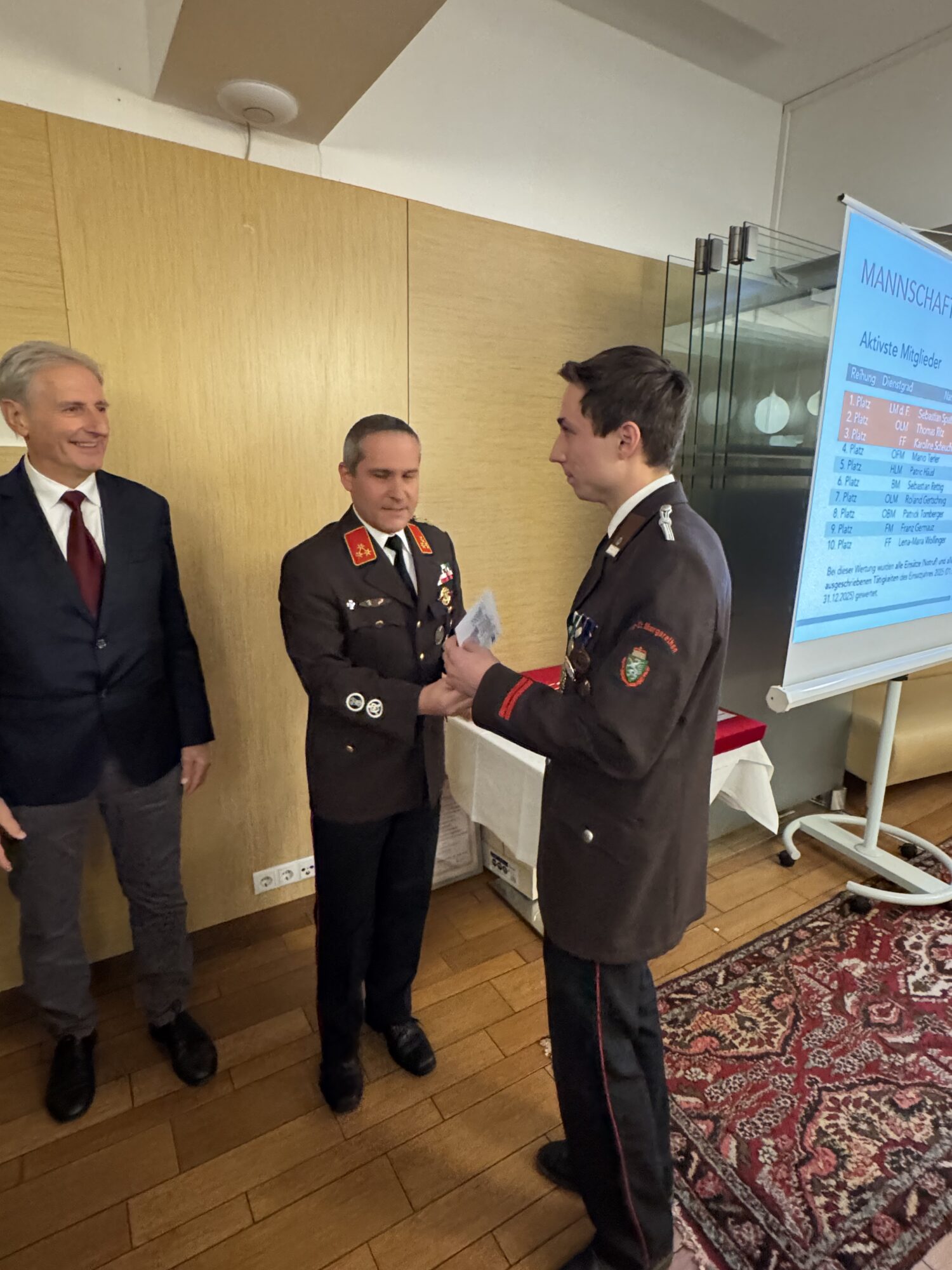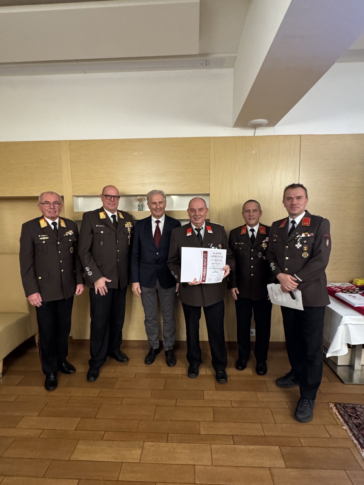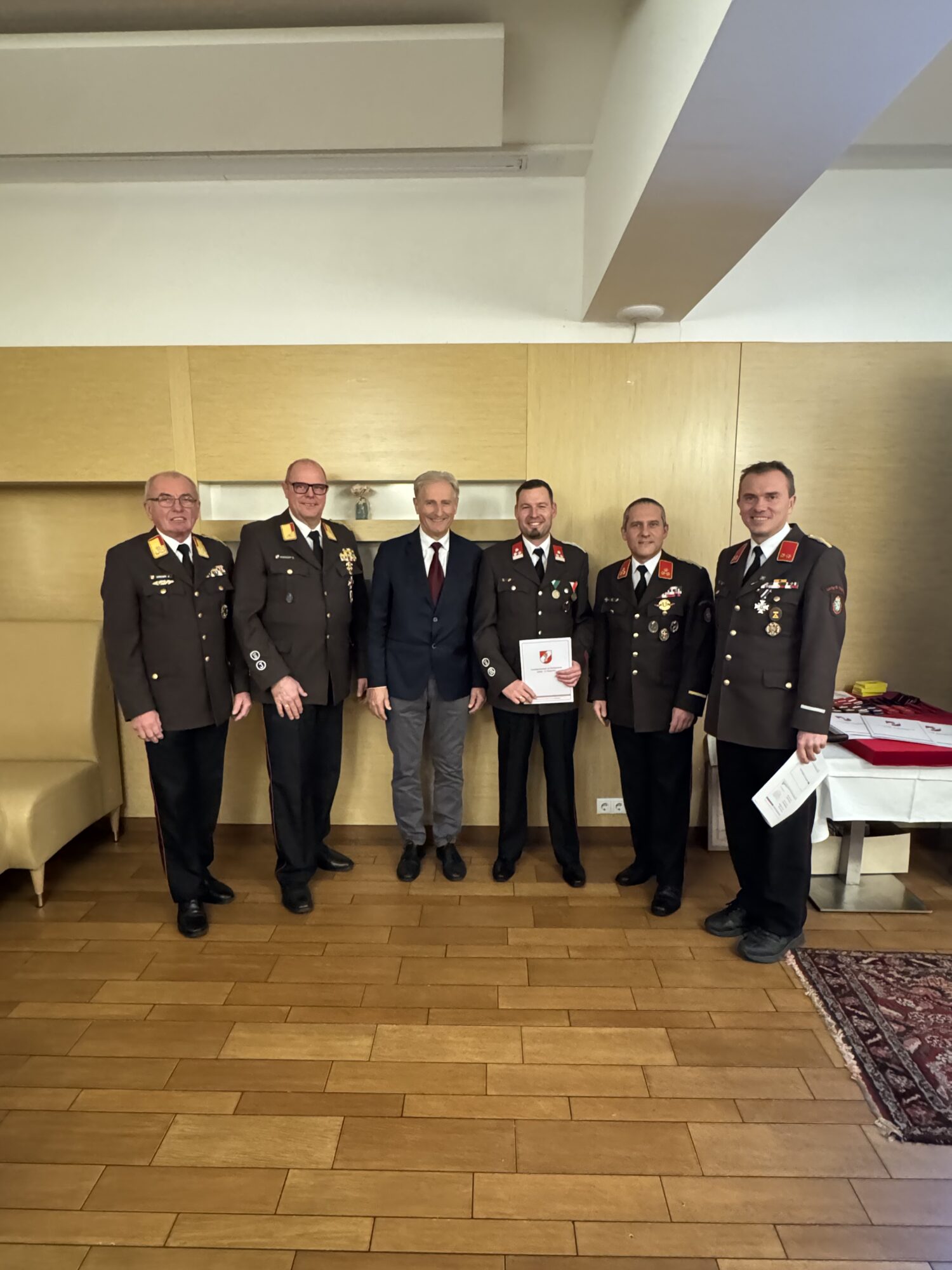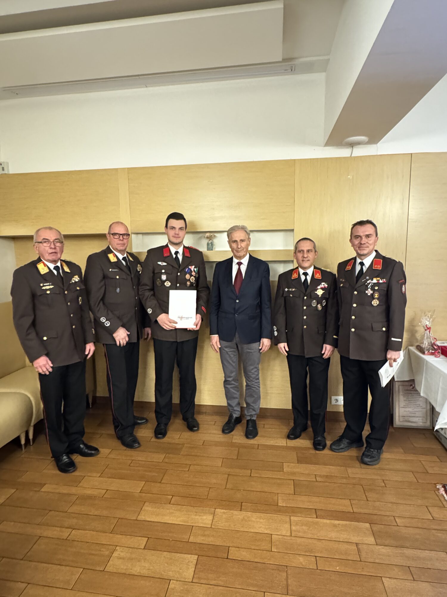 In der Sitzung des engen Ausschusses vom 05.01.2026 wurde vorgeschlagen, Johann Stradner den Dienstgrad Ehren-Hauptbrandmeister der Verwaltung zu verleihen. Im Zuge der Wehrversammlung wurde dieser Vorschlag mit einer Abstimmung der anwesenden KameradenInnen einstimmig unterstützt.