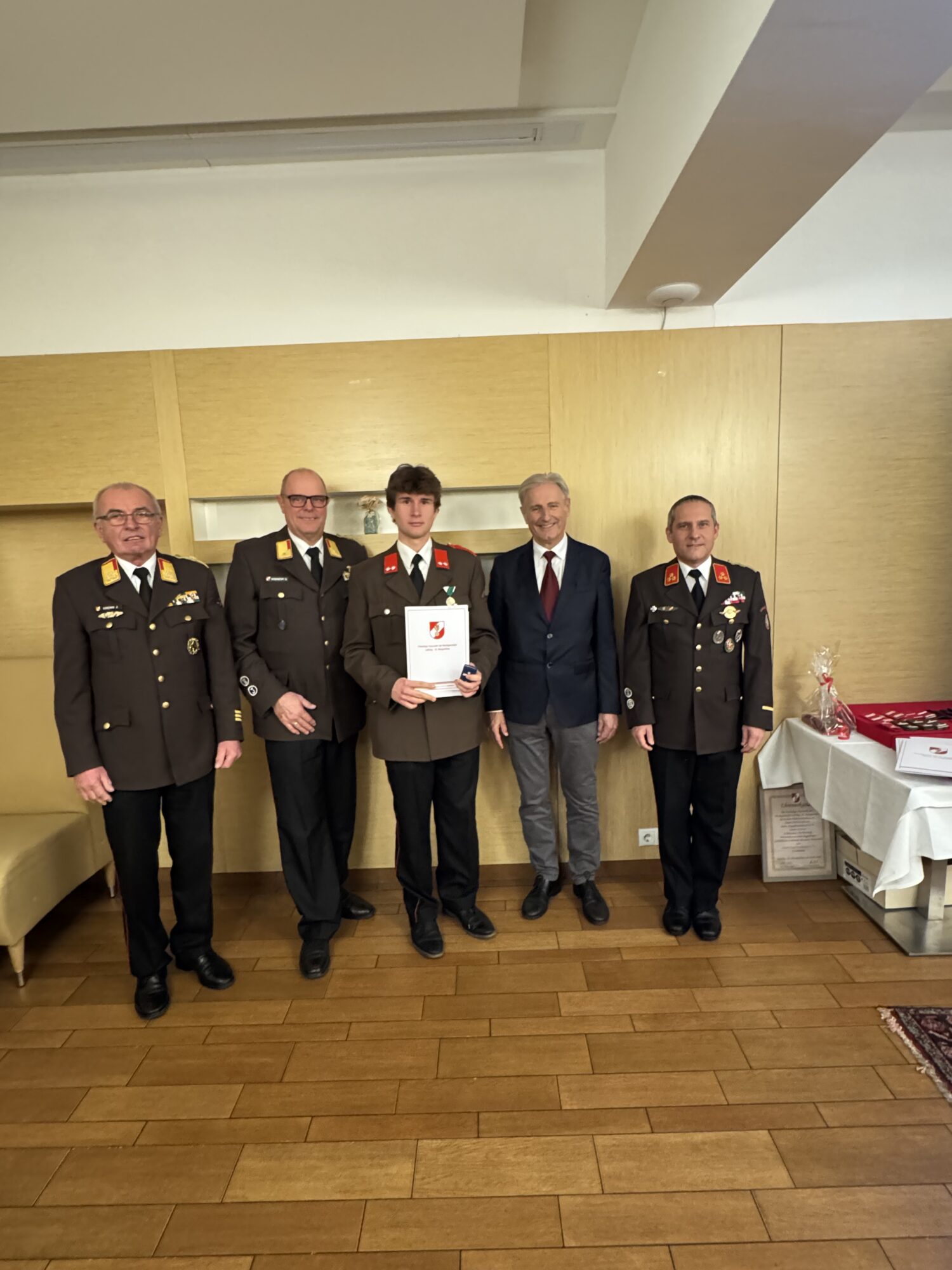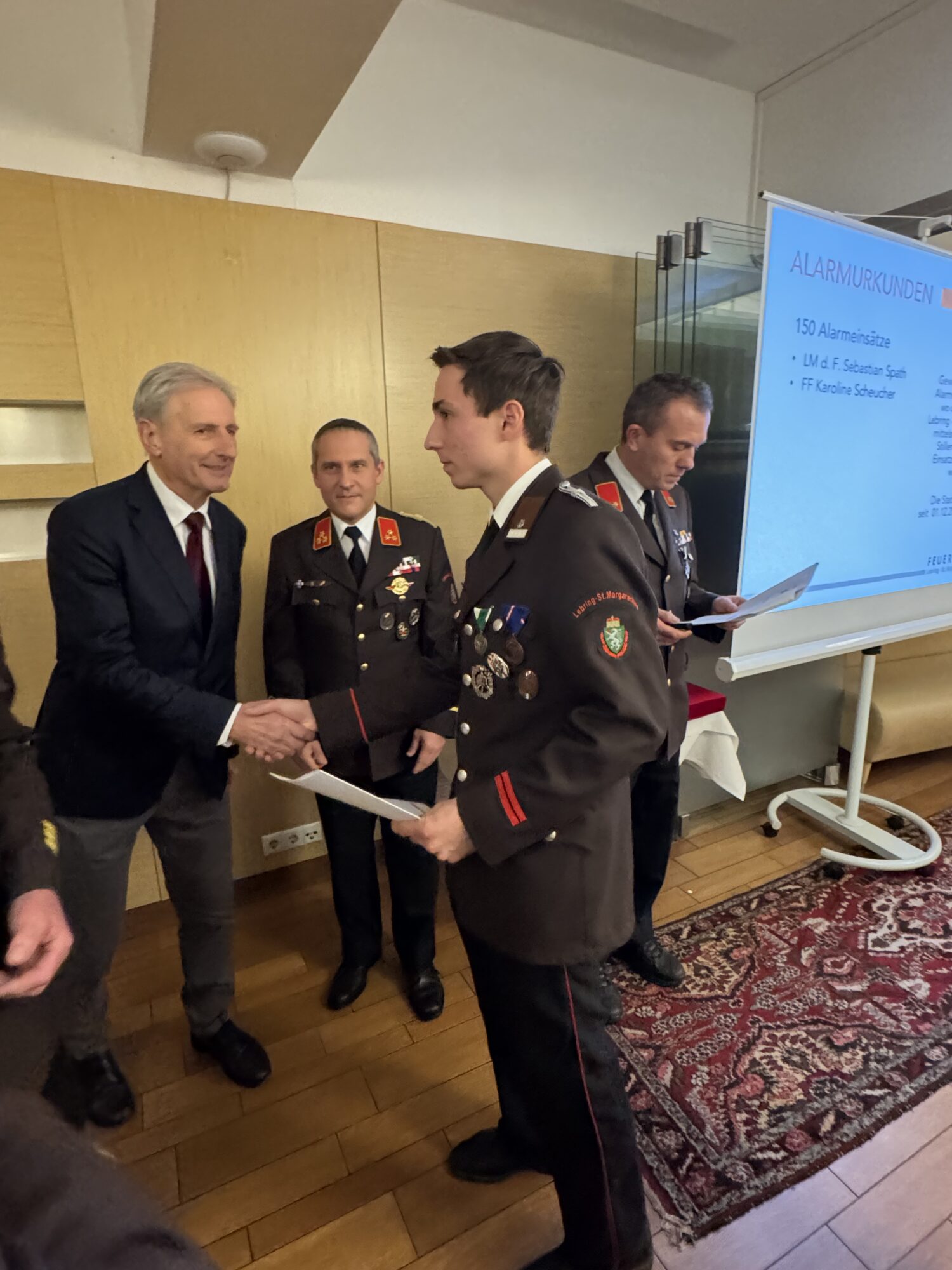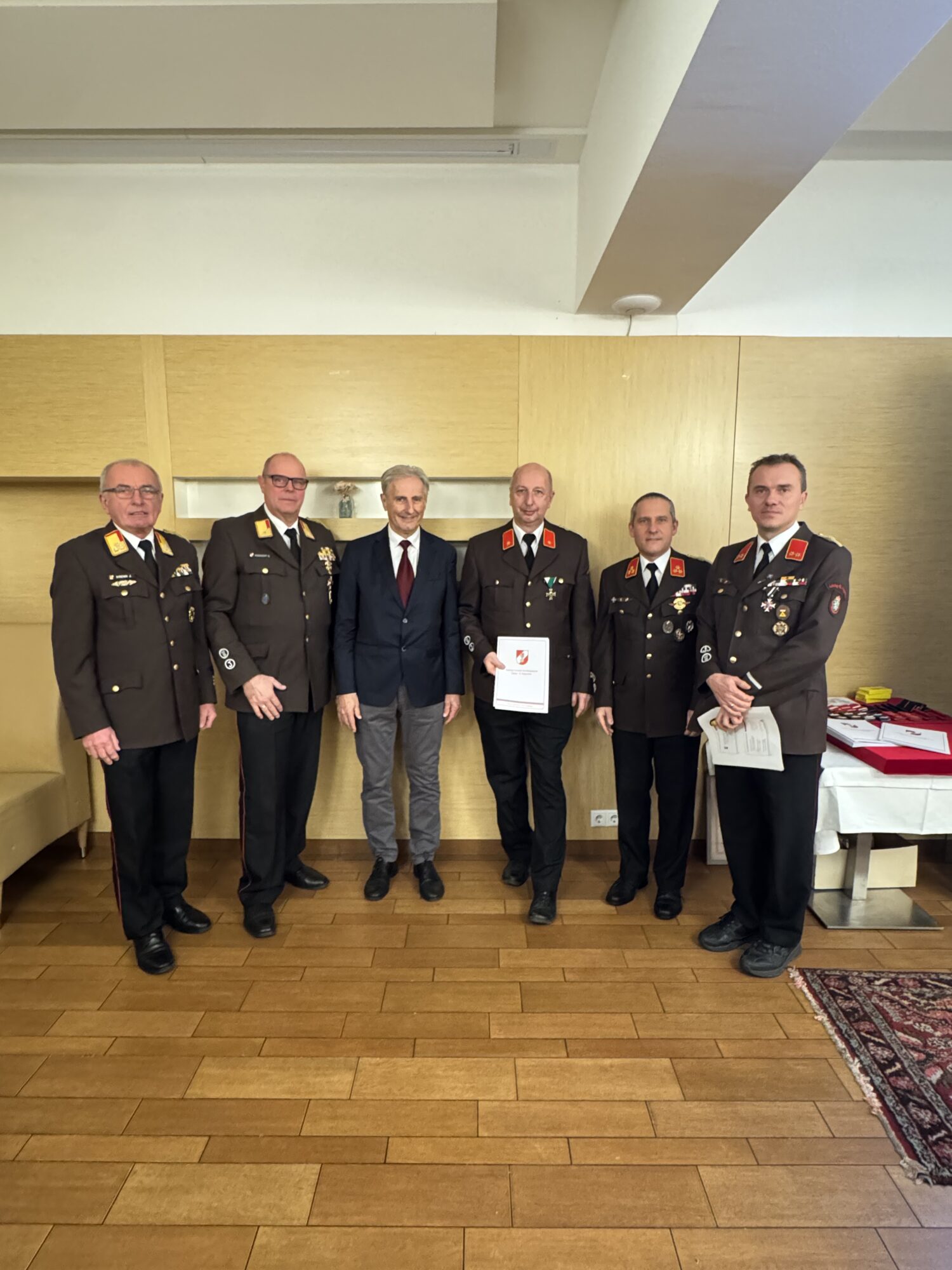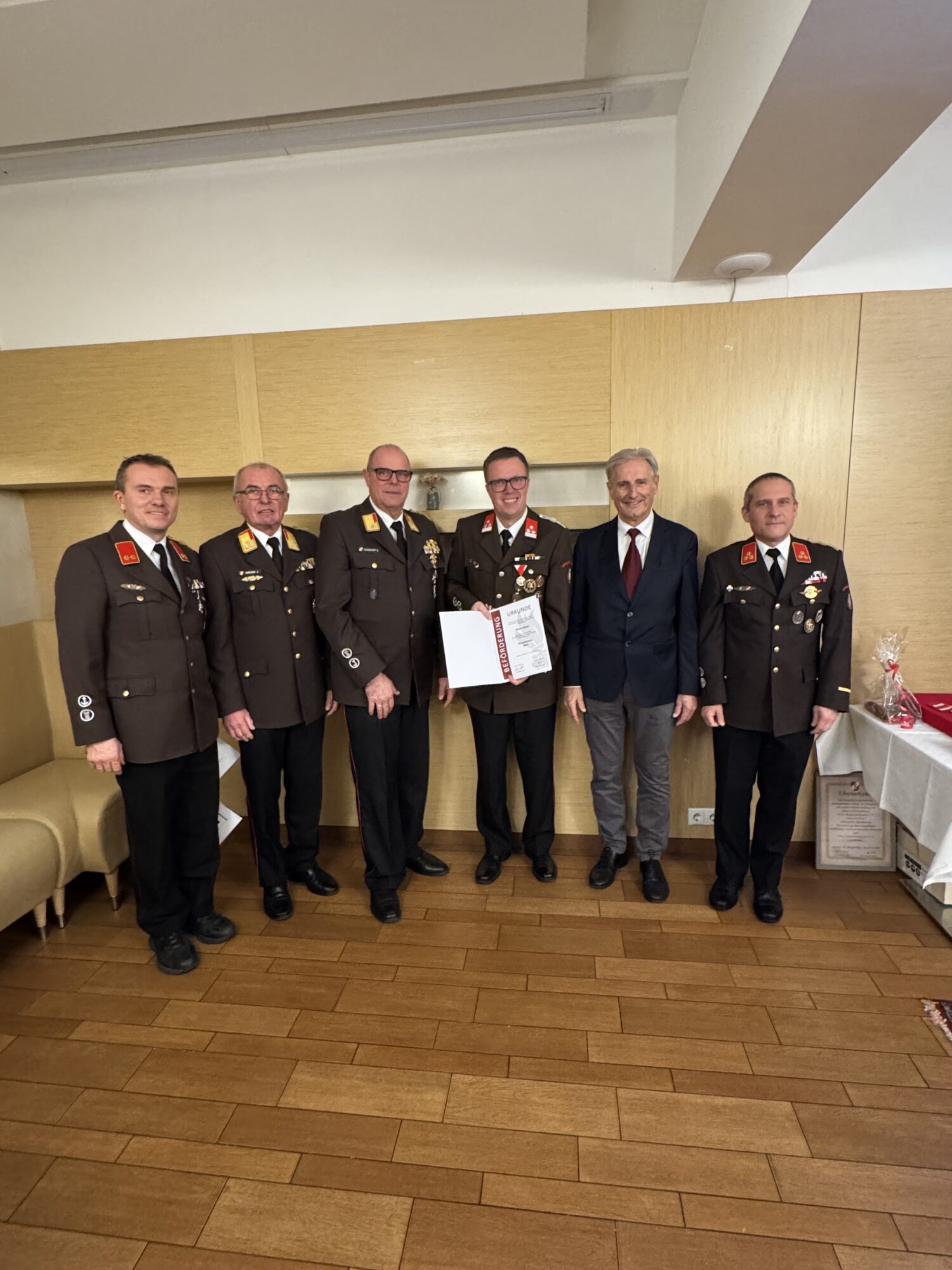 In der Sitzung des engen Ausschusses vom 05.01.2026 wurde vorgeschlagen, Johann Stradner den Dienstgrad Ehren-Hauptbrandmeister der Verwaltung zu verleihen. Im Zuge der Wehrversammlung wurde dieser Vorschlag mit einer Abstimmung der anwesenden KameradenInnen einstimmig unterstützt.